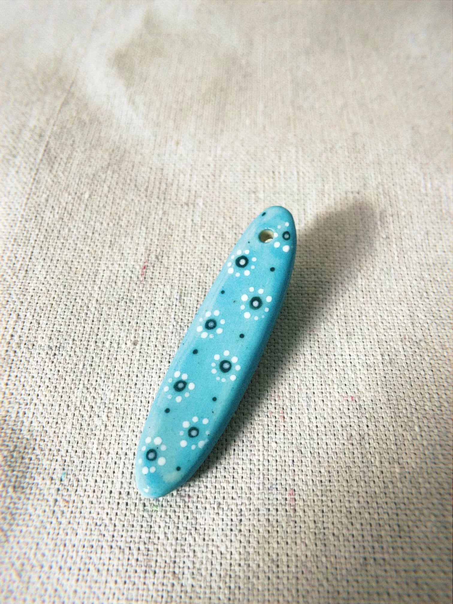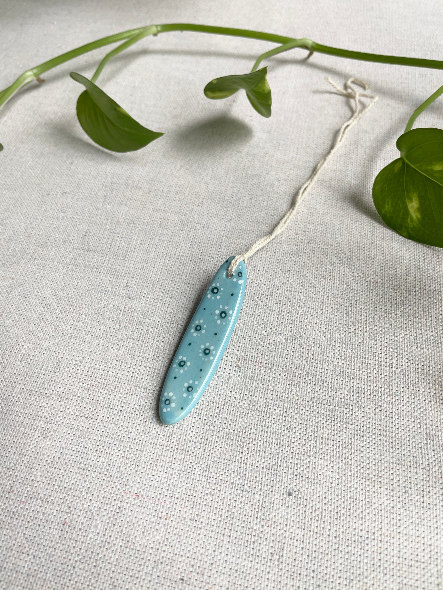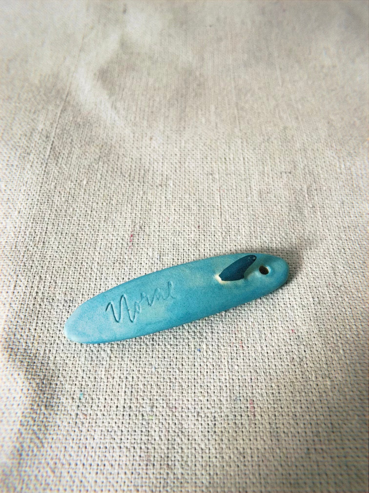 Mini ceramic longboard sculpted with smooth white stoneware clay. Hand painted.